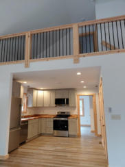 The soaring ceiling and Adirondack pine finishes combined with modern style are appealing!